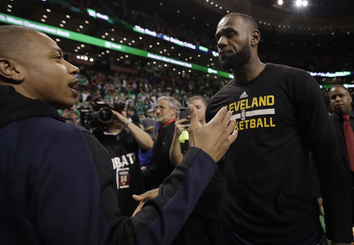 Former Boston Celtics guard Isaiah Thomas, left, and Cleveland