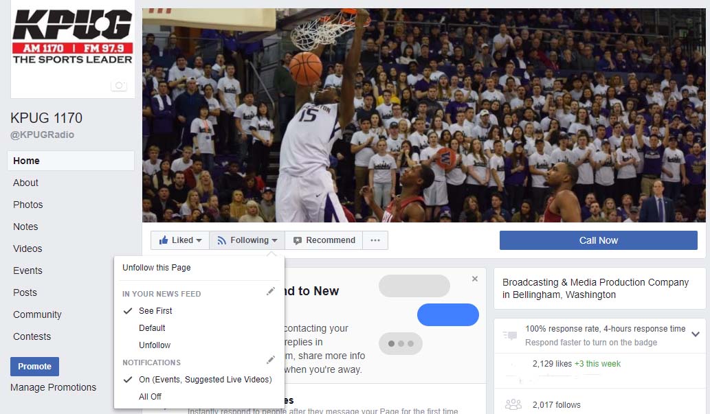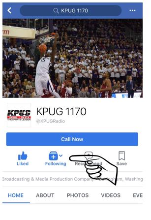 Go to KPUG’s Facebook page and tap the “following” button underneath our profile picture.