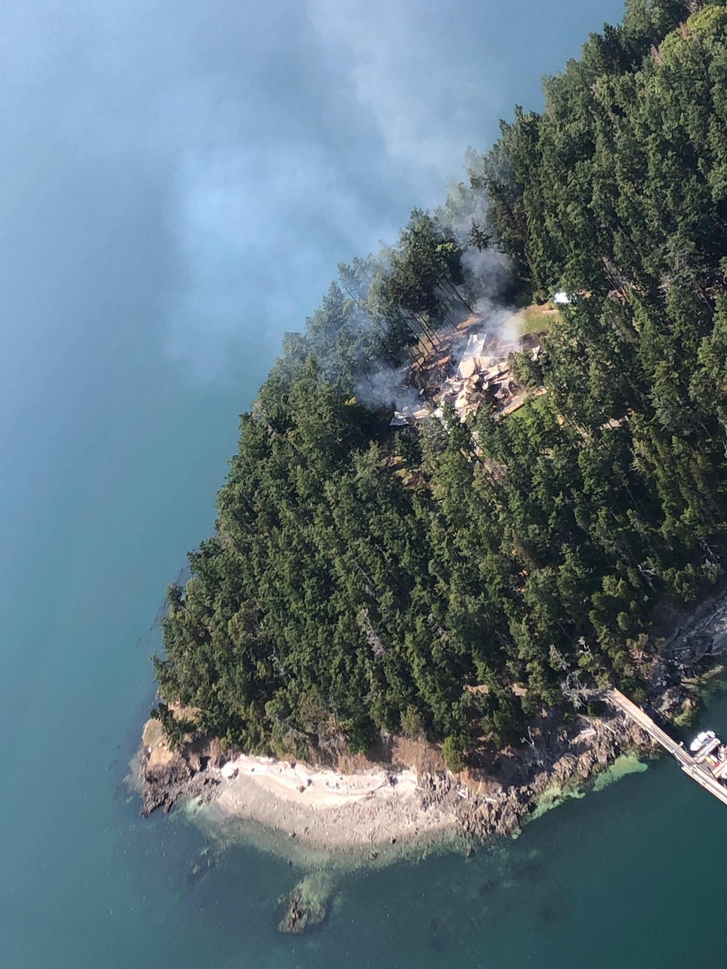 LOPEZ SOUND, Wash. — A large home on a private island just east of Lopez Island was destroyed in a fire.
