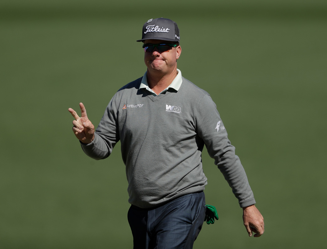 Charley Hoffman waves after putting on the second hole during the second round of the Masters golf tournament Friday, April 7, 2017, in Augusta, Ga. (AP Photo/David Goldman)