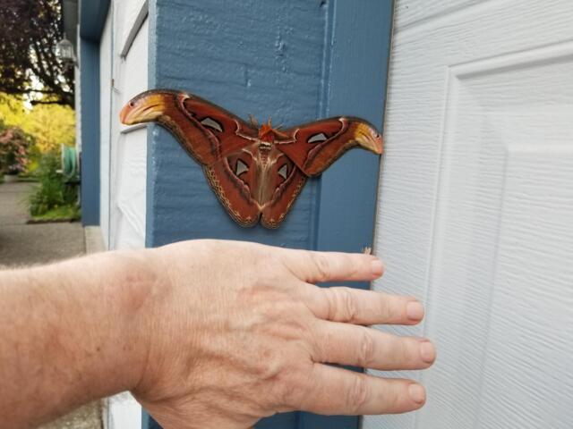 Atlas moths don’t harm people and are safe to photograph or handle, but they are illegal to import or possess in the U.S.