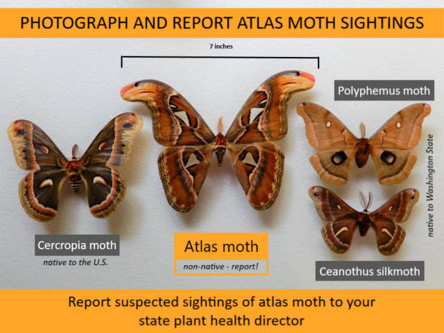 The state Department of Agriculture is asking the public to be on the lookout for the world’s largest moth after one was spotted in Bellevue.