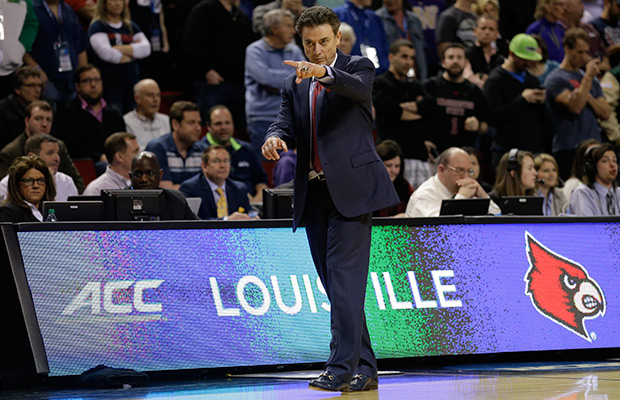 Louisville head coach Rick Pitino gestures to his team during the second half of an NCAA tournament college basketball game against UC Irvine in the Round of 64 in Seattle, Friday, March 20, 2015. Louisville beat UC Irvine 57-55. AP Photo/Ted S. Warren