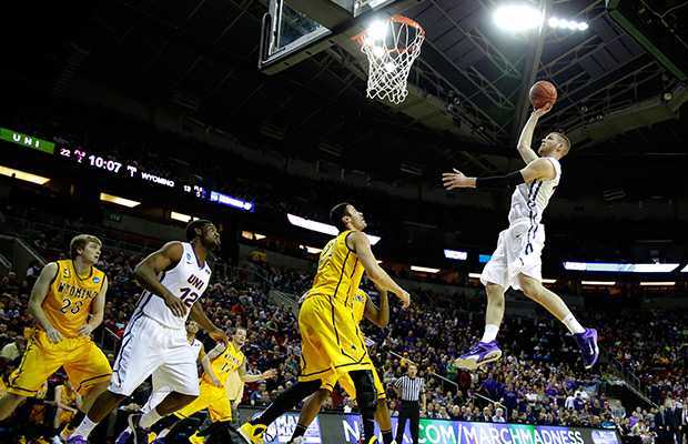 Northern Iowa forward Seth Tuttle, right, jumps to shoot against Wyoming during the first half of an NCAA tournament college basketball game in the Round of 64 in Seattle, Friday, March 20, 2015. AP Photo/Ted S. Warren